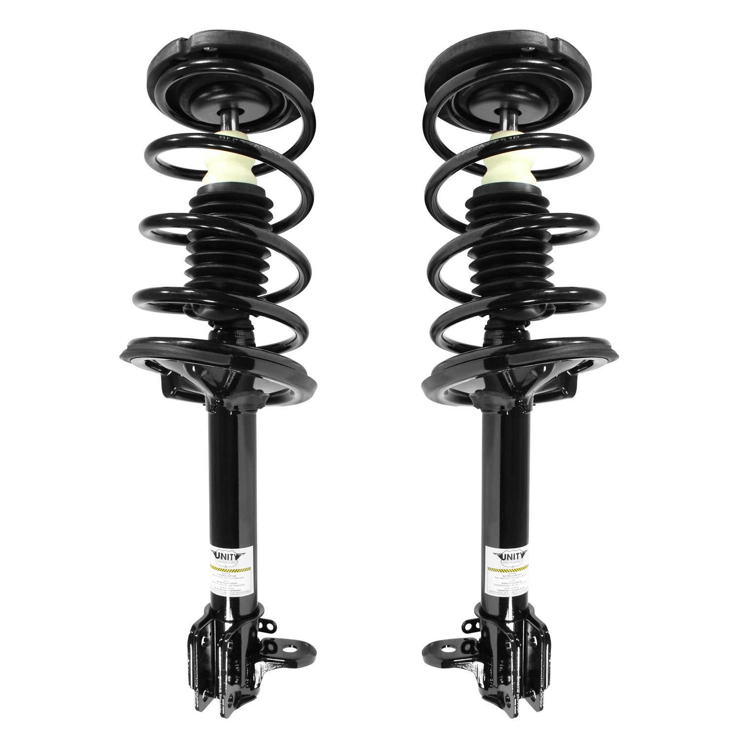Unity automotive has over 50 years of experience manufacturing parts in the aftermarket automotive industry. The company offers superior quality, specializing in making rock solid auto parts that withstand the test of time. With a true understanding of their marketplace they have become the industry leader in innovation of aftermarket suspension. Unity automotive delivers top of the line quality suspension parts made to insure a trouble-free installation and long-lasting reliability. Unity complete strut assemblies allow for a hassle-free repair with all new components and eliminates the need for specialty tools. Preassembled suspension strut assemblies include top mount, bearing plate, bumper, insulators and coil spring. Includes (2) Complete Strut Assemblies.