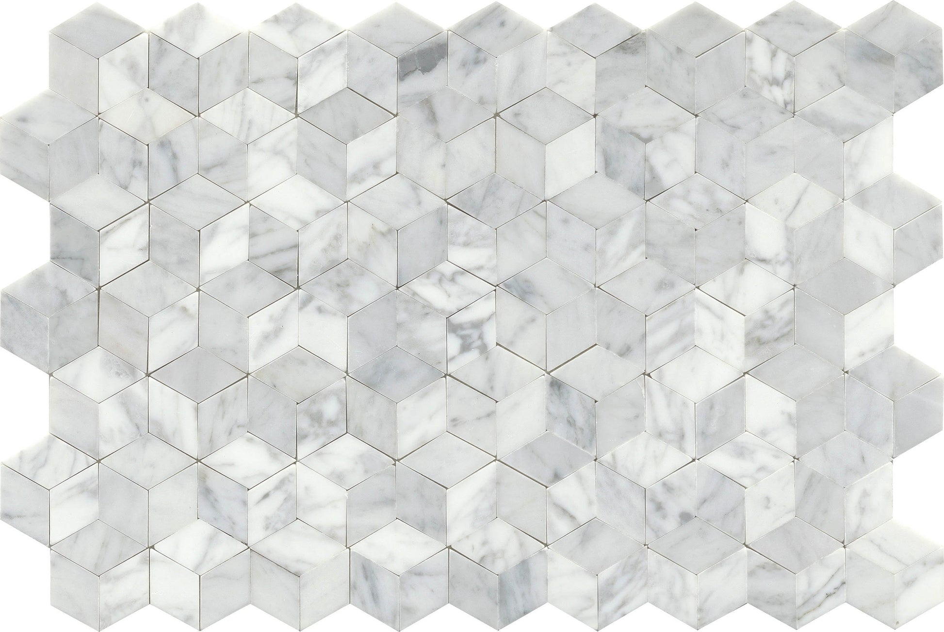 Modern White Gray Groutless 3D Cube Marble Mosaic Tile F67LINKWH1218MCU